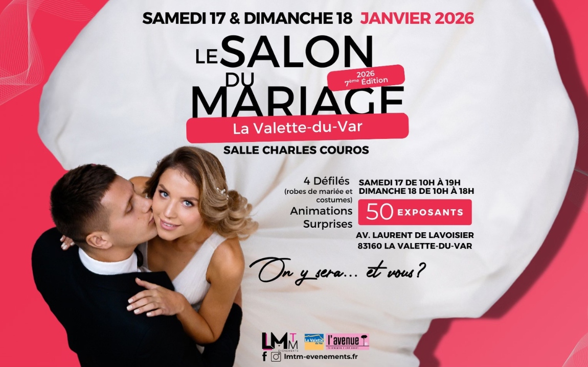Vous rêvez d'un mariage inoubliable ? Marquez vos calendriers ! La 7ème édition du Salon du Mariage de La Valette-du-Var, en Provence-Alpes-Côte d'Azur, se tiendra les samedi 17 et dimanche 18 janvier 2026 à la salle Courros. Cet événement incontournable vous offre une occasion unique de rencontrer des professionnels passionnés et de trouver l'inspiration pour organiser le plus beau jour de votre vie.
